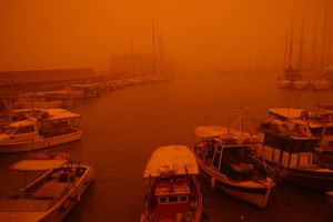 Greek island of Crete is cloaked by Saharan dust storm - turning its blue skies blood red