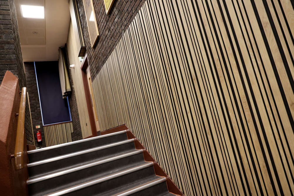 That historic fabric now sits alongside new wood panelling, updated seating, and a fully modernised technical setup, with new retractable seating on each level to make each space adaptable.