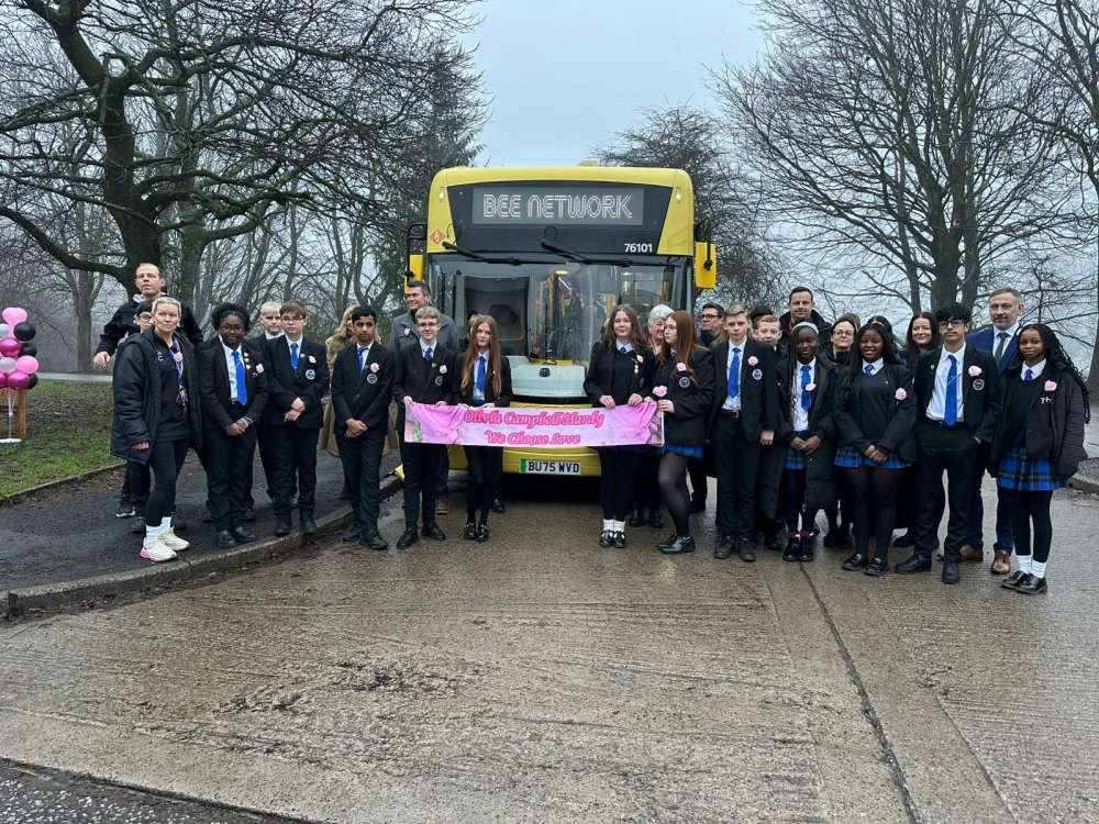 A special bus carrying the name of Olivia Campbell-Hardy, one of the 22 victims of the Manchester Arena bombing, was unveiled outside Tottington High School this morning, Monday 19 January.