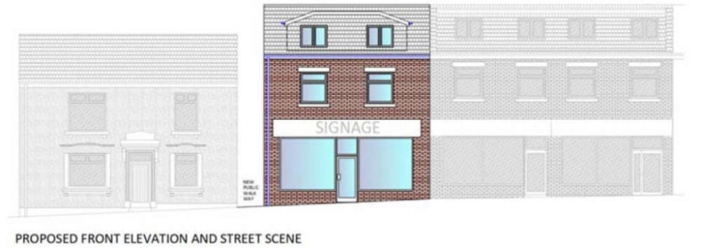 Under the approved plans, the ground floor will be used for retail or commercial purposes, with storage space provided at lower ground level. Two self contained flats will be created across the first and second floors.