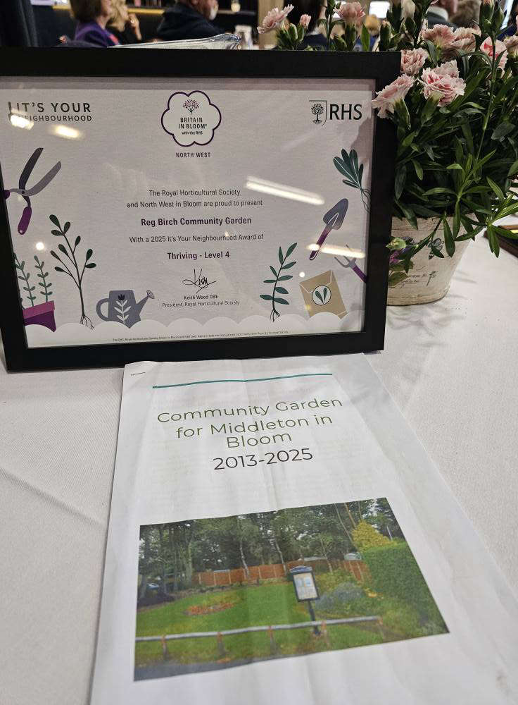 Middleton’s Reg Birch Community Garden is one of a growing number of Rochdale Borough green spaces receiving national awards thanks to local dedication and environmental teams. It is hoped the award will inspire further projects across the borough and encourage even more residents to get involved in future years.