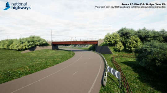 Building the loop will also mean the realignment of the M66 southbound slip road to M60 junction18 to accommodate it, including a new overbridge (Pike Fold viaduct) where the slip road crosses the Northern Loop and realignment of the left turn lane to the M62 eastbound.