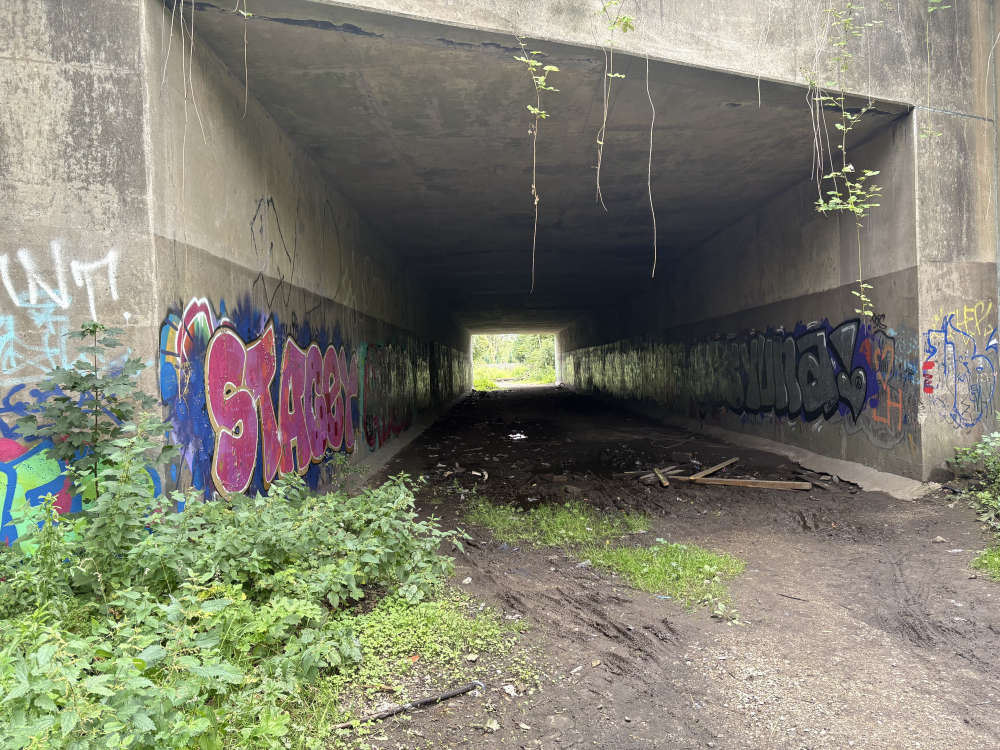 However, the underpass has no paved surface or lighting, is currently strewn with litter and covered in graffiti and remains extremely muddy, even during one the driest springs and summers on record this year.