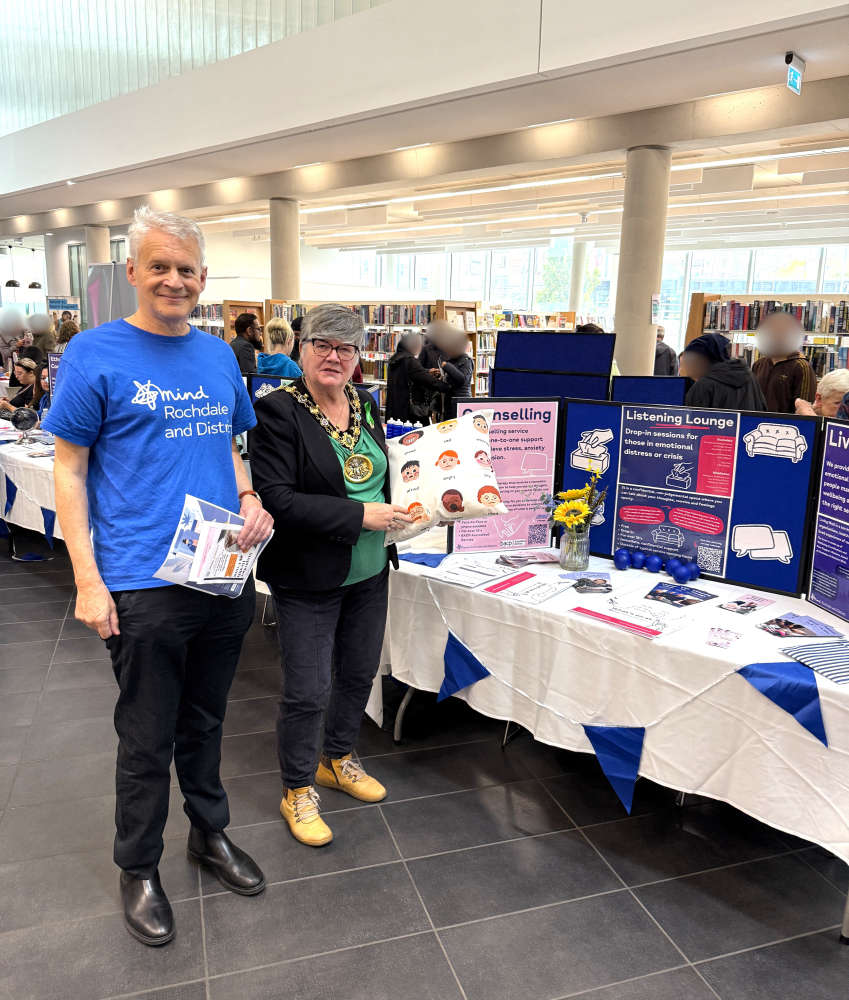 Mayor of Rochdale Councillor Janet Emsley joined the celebrations, meeting with volunteers, staff and local organisations working on the frontline of mental health support across the borough.