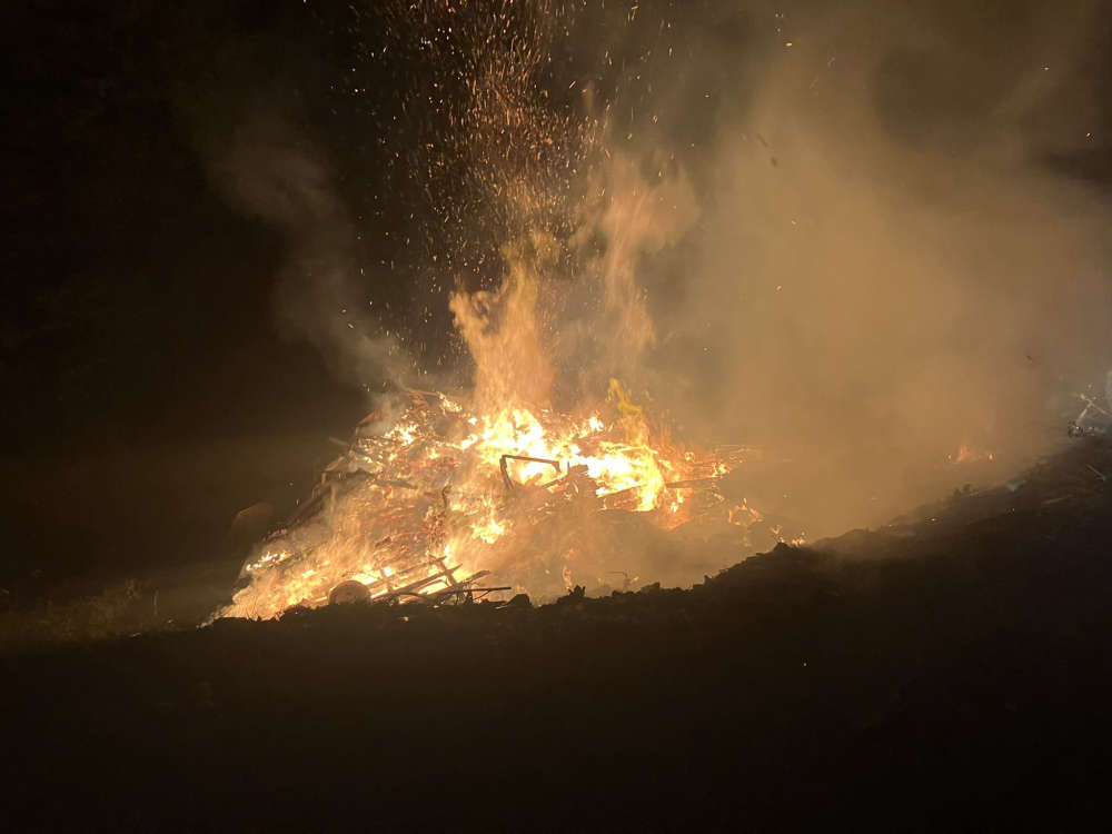 It's another large but controlled improv bonfire by a local community. The fire crew gave some advice on how to control it and left them to it.
