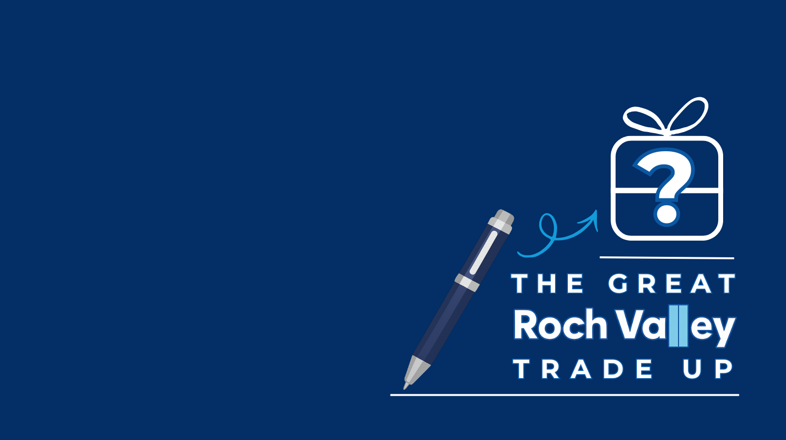 The Great Roch valley Trade Up is a challenge run by the show "Up For It" every Monday at 8pm where the presenters, Joe and Courtney, with the help of their producer, Matt, are looking to trade up each week from a Roch Valley Radio pen to a prize that could be won by one of YOU on the 1st of June.